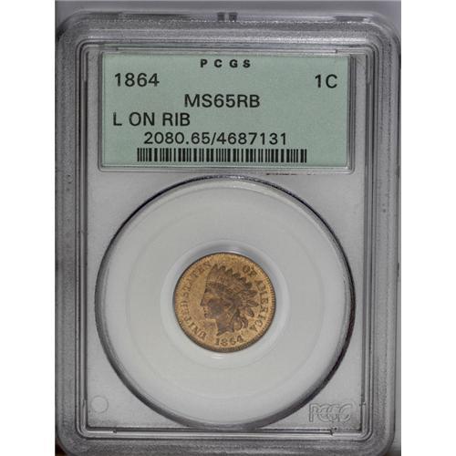 1864 1C L On Ribbon MS65 Red and Brown PCGS. The coppe