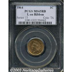 1864 1C L On Ribbon MS65 Red and Brown PCGS. Mostly brilliant original luster begins to mottle with darker patina on both sides of this example of the popular 1864-L issue. Great device detail from this well struck coin and no detracting marks are the reason for the Gem grade. Important notice: Heritage usually auctions material at the rate of 200-250 lots per hour. On some occasions eBay Live bid software or the Internet may not be able to keep up with the pace of the auction. We recommend placing a realistic absentee bid now as insurance to avoid disappointment. Occasionally the auctioneer may eliminate or reject an eBay Live bid, and the auctioneer may also reopen a lot after the close of the eBay live bidding (usually because we missed an audience bid), and may reject your bid even if it shows you as the winning bidder. By bidding via eBay Live, you agree that Heritage may award the lot to another bidder at its sole discretion under the circumstances described above or any other reasonable circumstances. Also please note that all Heritage lots purchased through eBay Live carry a 20% Buyer's Premium. Please make sure you read the Terms and Conditions before you bid.