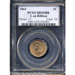 <B>1864<1C> L On Ribbon MS65 Red and Brown PCGS.</B></I> A boldly struck and unabraded Gem with substantial orange color on the obverse, while the reverse displays variegated lilac and gold hues. Struck from widely rotated dies. <BR><BR><B>Important notice:</B> Heritage usually auctions material at the rate of 200-250 lots per hour. On some occasions eBay Live bid software or the Internet may not be able to keep up with the pace of the auction. We recommend placing a realistic absentee bid now as insurance to avoid disappointment. Occasionally the auctioneer may eliminate or reject an eBay Live bid, and the auctioneer may also reopen a lot after the close of the eBay live bidding (usually because we missed an audience bid), and may reject your bid even if it shows you as the winning bidder. By bidding via eBay Live, you agree that Heritage may award the lot to another bidder at its sole discretion under the circumstances described above or any other reasonable circumstances. Since eBay bids are not shown to us until we open the lot on the floor, we treat those bids just like floor bids. In most cases the floor responds before the eBay bid is presented to us, due to Internet lag time, so for consistency we have made it a policy that floor bids are always considered first over tie eBay live bids. Also please note that all Heritage lots purchased through eBay Live carry a 20% Buyer's Premium. Please make sure you read the Terms and Conditions before you bid. </span></font></tr></table></td></tr></table>