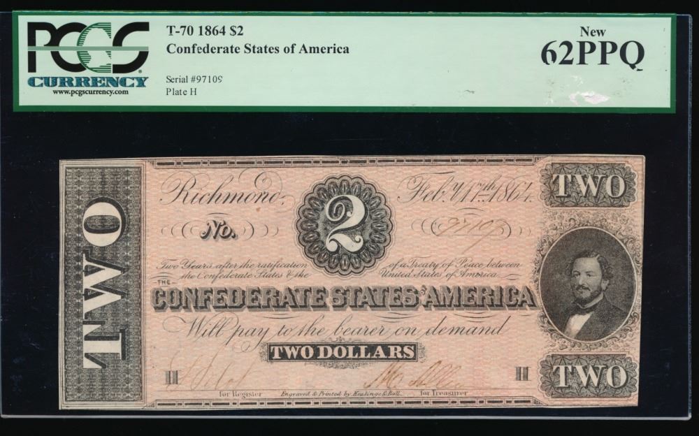 One 1864 $2 Confederate States of America Note PCGS 62PPQ.