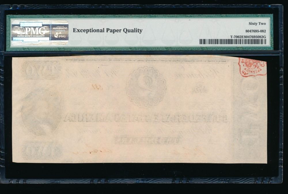 One 1864 $2 Confederate States of America Note PMG 62EPQ.