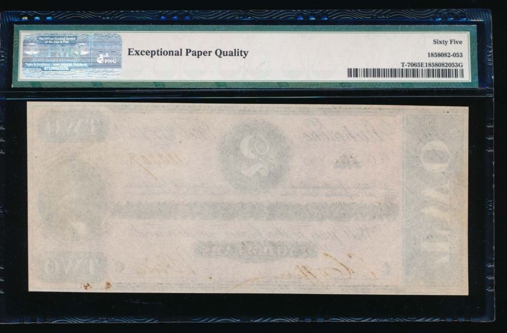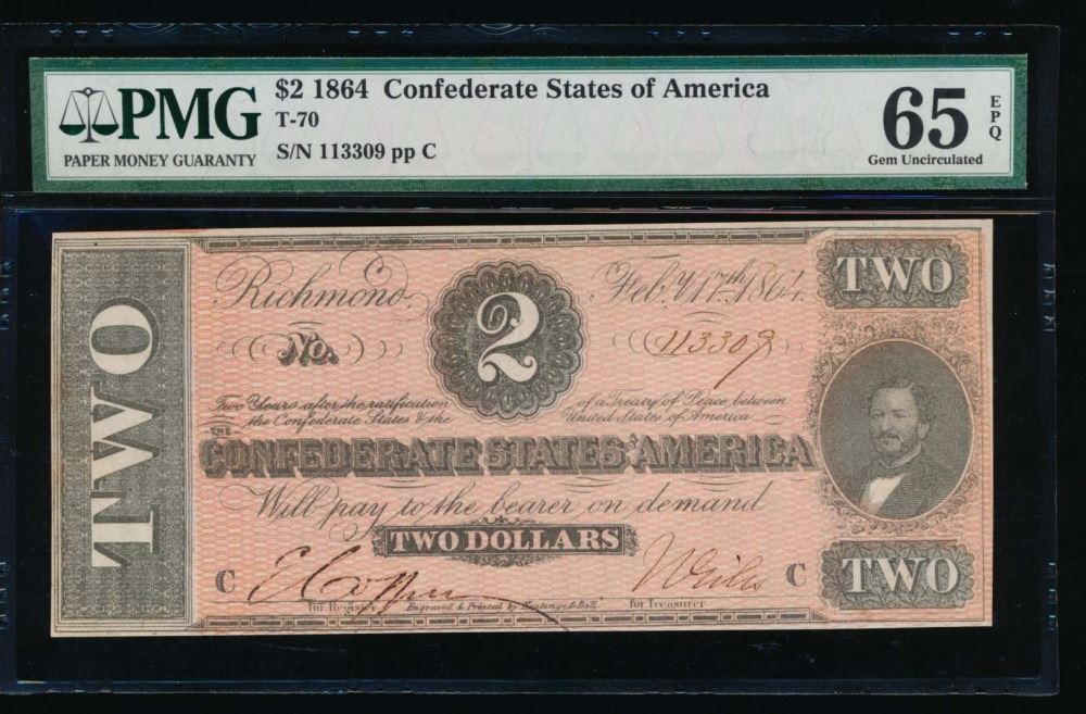 One 1864 $2 Confederate States of America Note PMG 65EPQ.