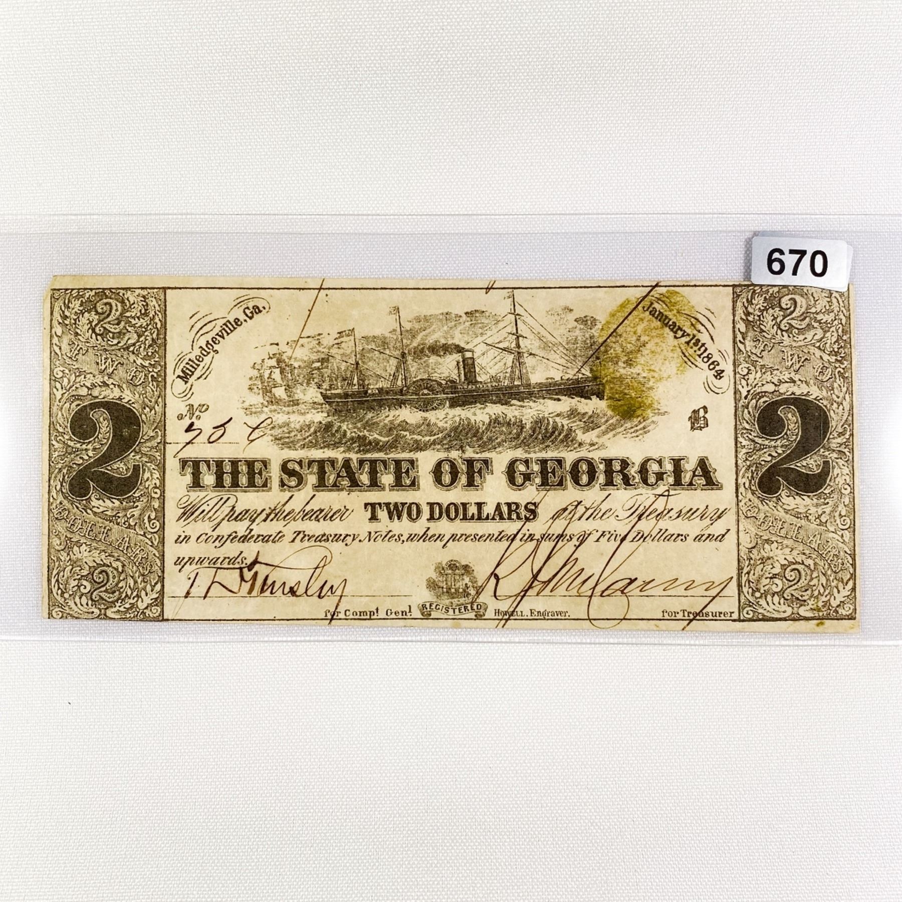 1864 $2 State of Georgia Confederate Note