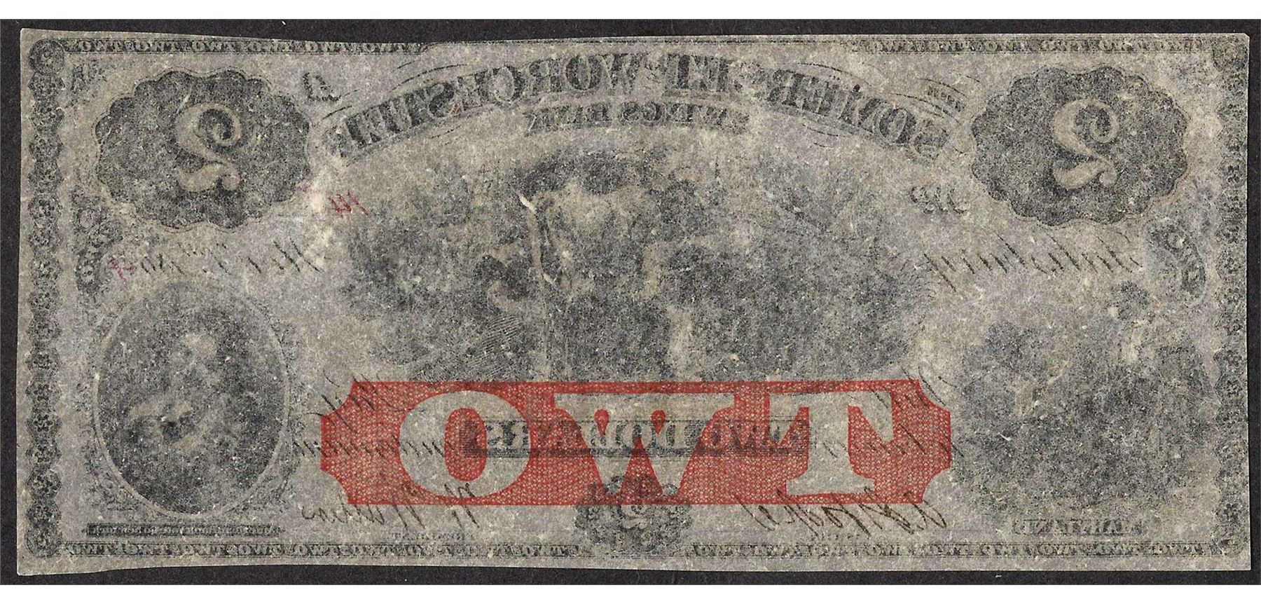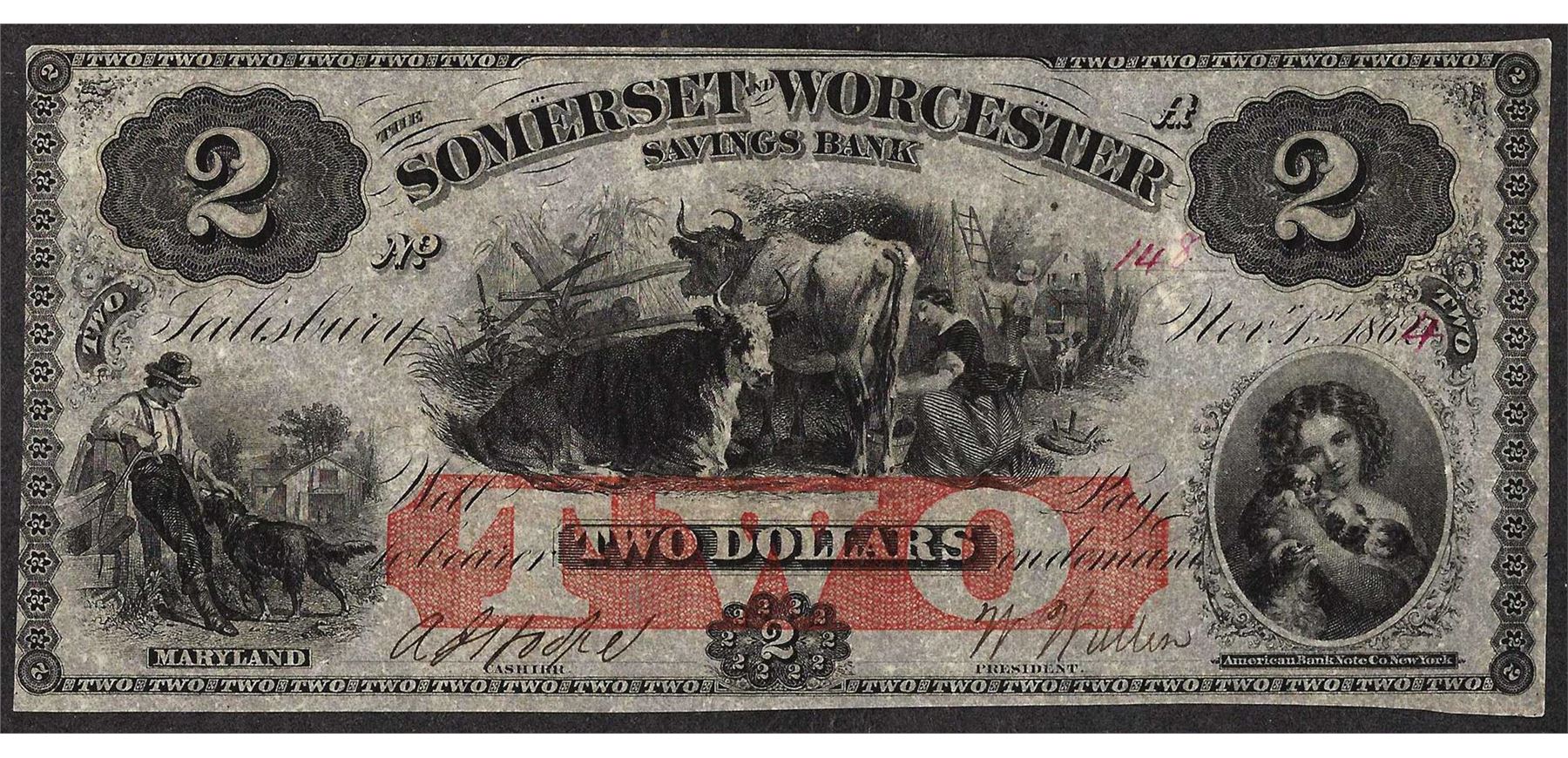 One 1864 $2 The Somerset & Worcester Savings Bank Obsolete Note.