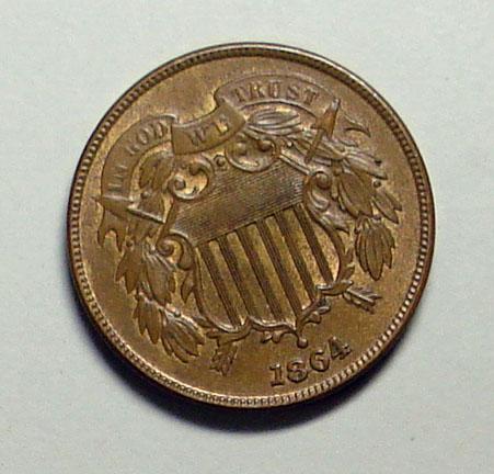 1864 2 cent MS63 brn.Near perfect color and planchet