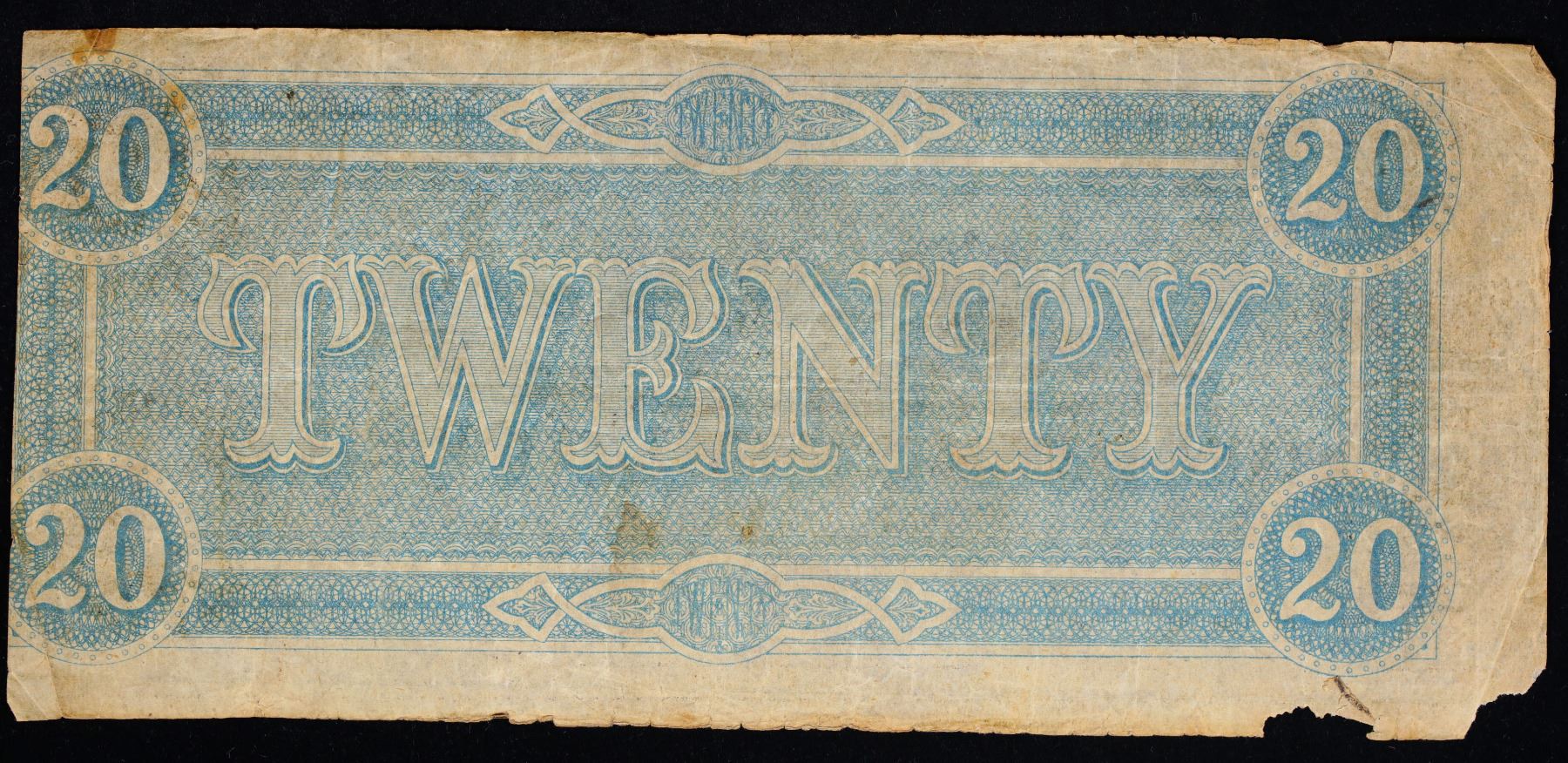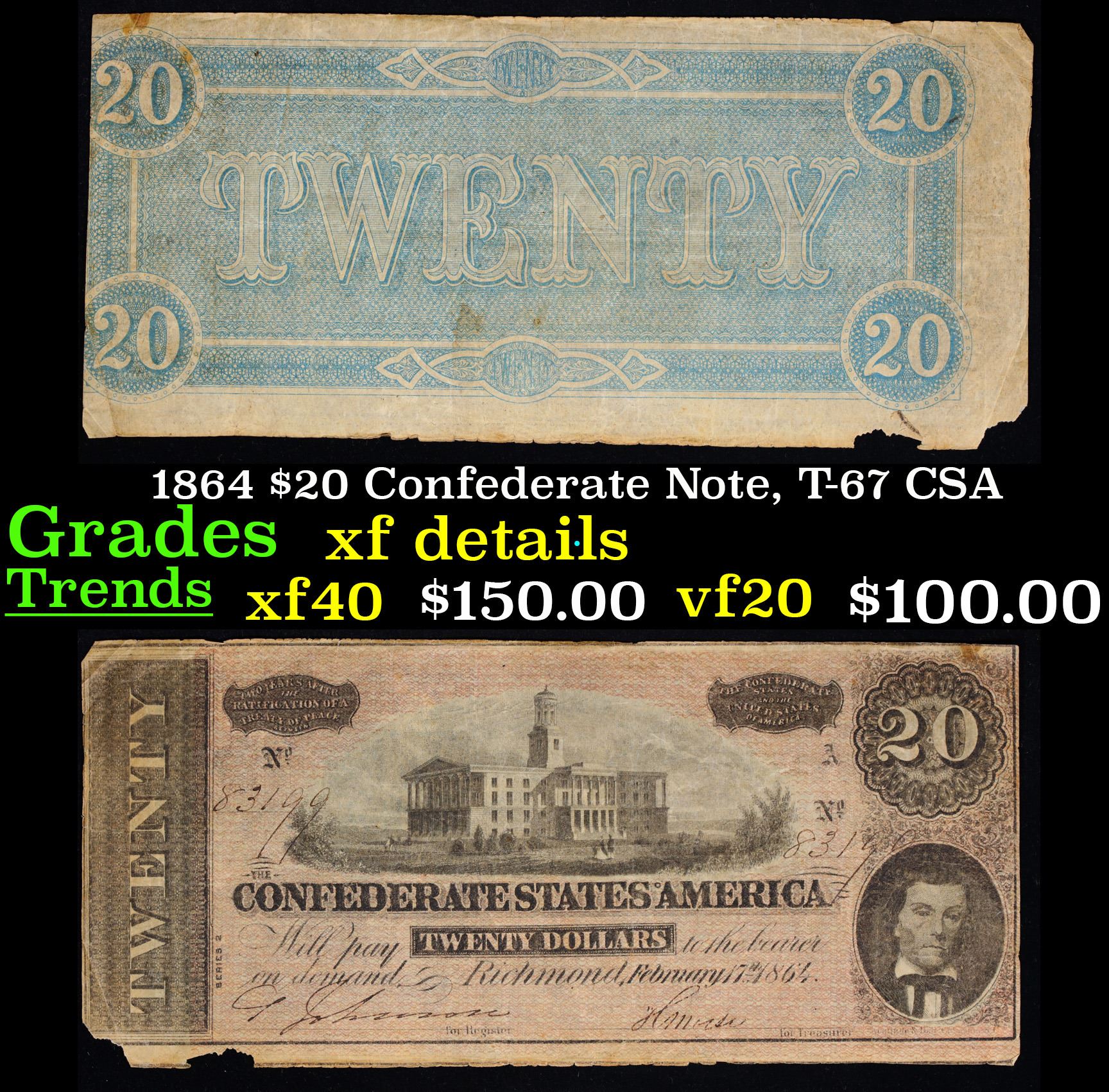 1864 $20 Confederate Note, T-67 CSA Grades xf details