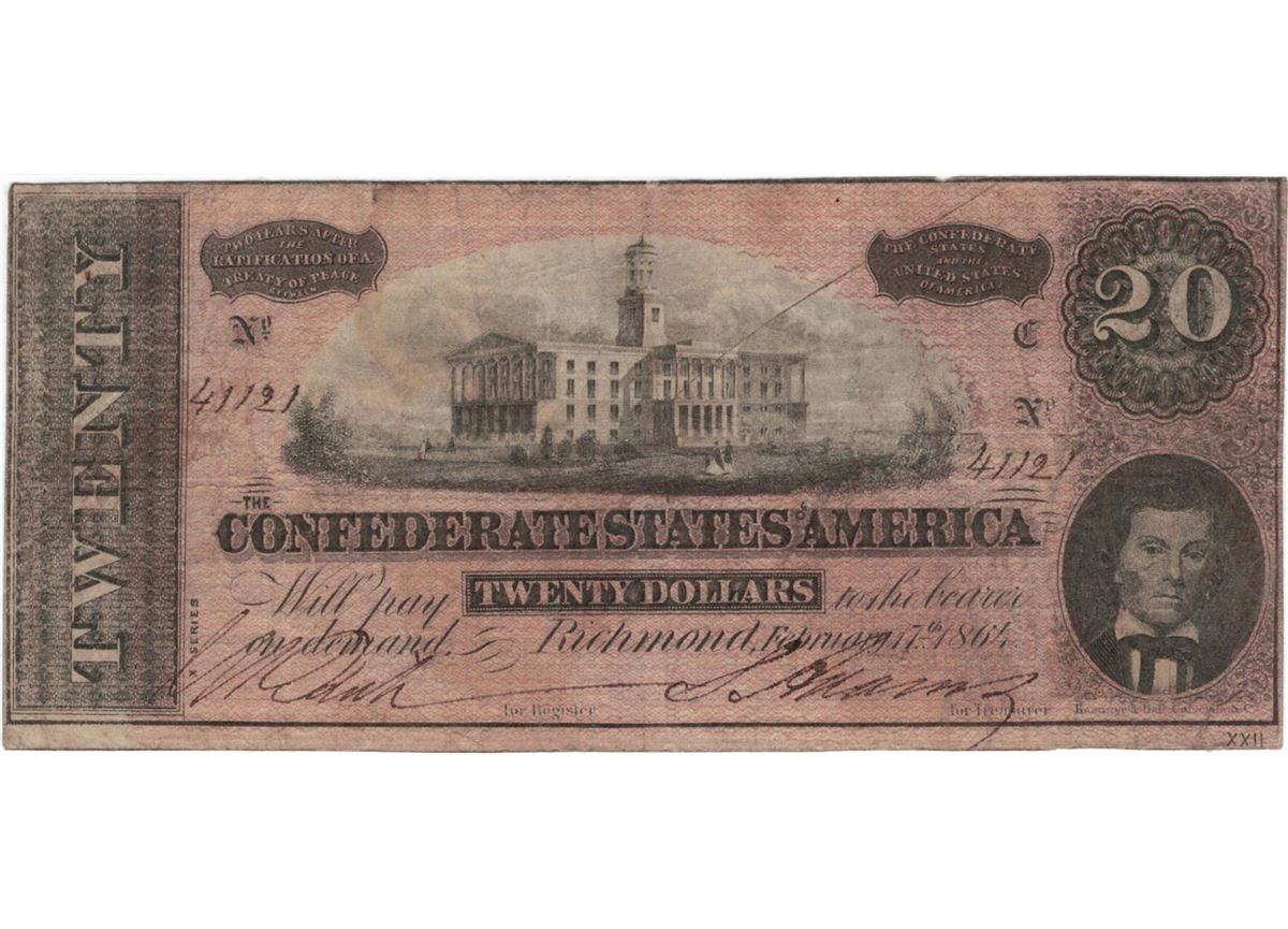 1864 $20 Confederate States of America Bank Note.