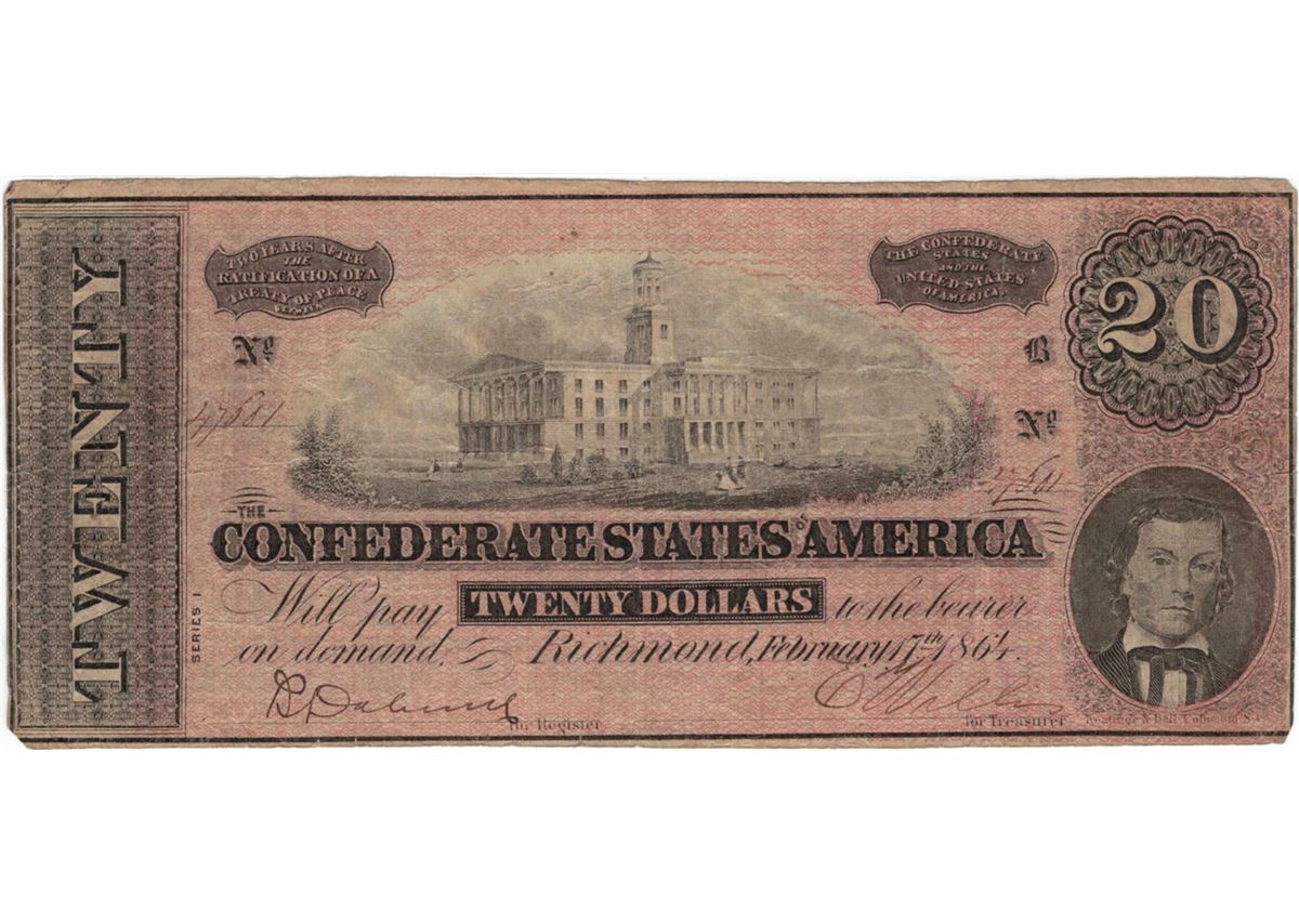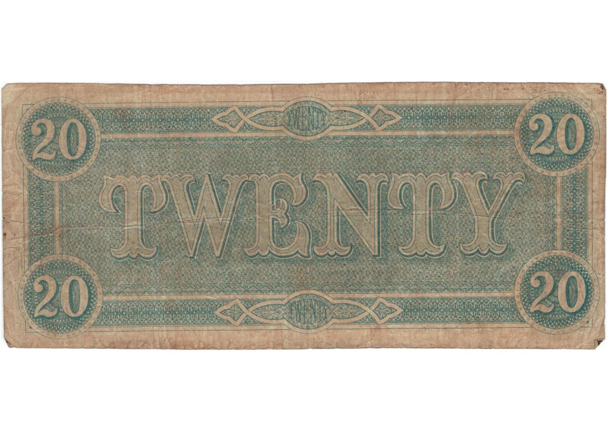 1864 $20 Confederate States of America Bank Note.