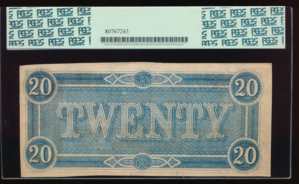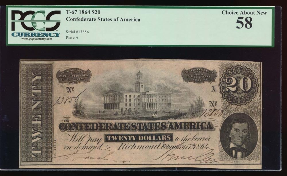 One 1864 $20 Confederate States of America Note PCGS 58.
