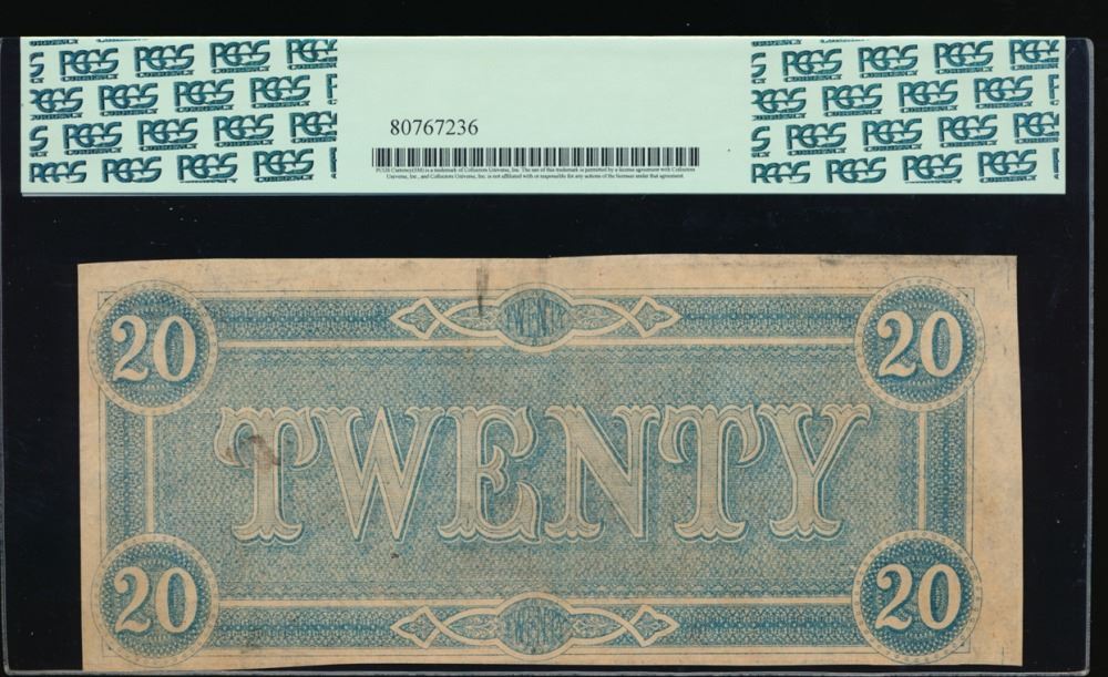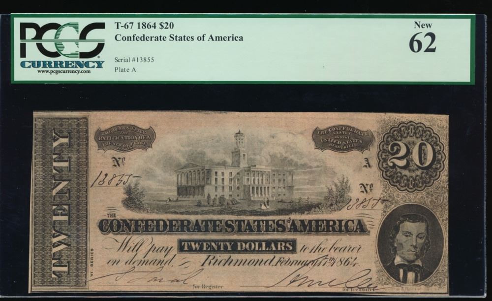 One 1864 $20 Confederate States of America Note PCGS 62.