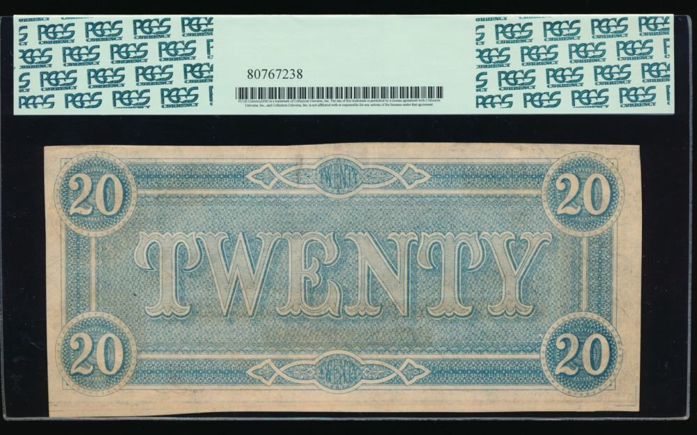 One 1864 $20 Confederate States of America Note PCGS 63.