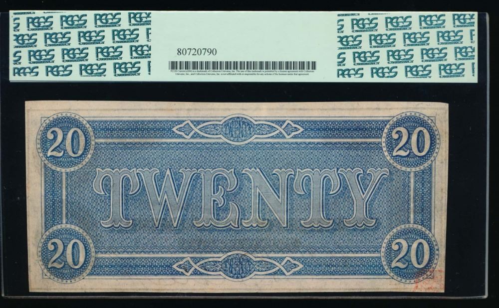 One 1864 $20 Confederate States of America Note PCGS 64PPQ.