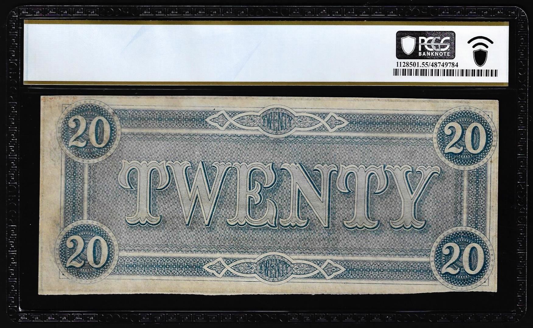 One 1864 $20 Confederate States of America Note T-67 PCGS About Unc 55 CSA Treasury Stamp. PCGS Graded.