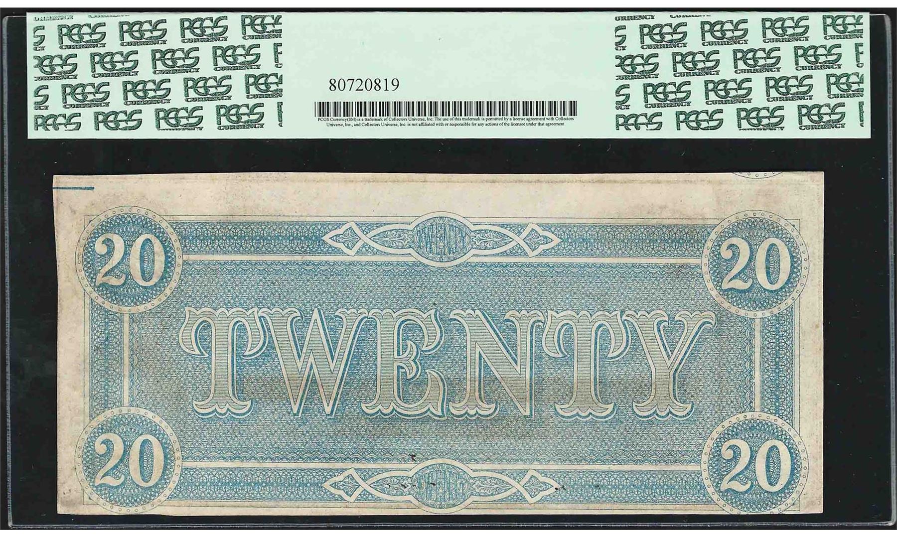 1864 $20 Confederate States of America Note T-67 PCGS Choice About New 58PPQ