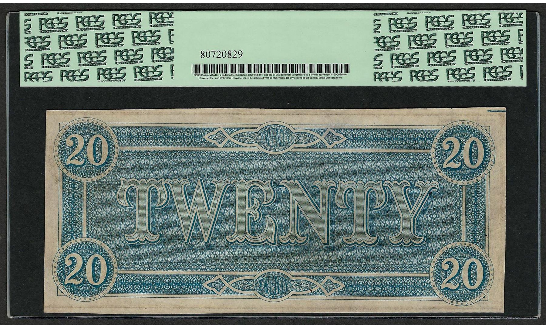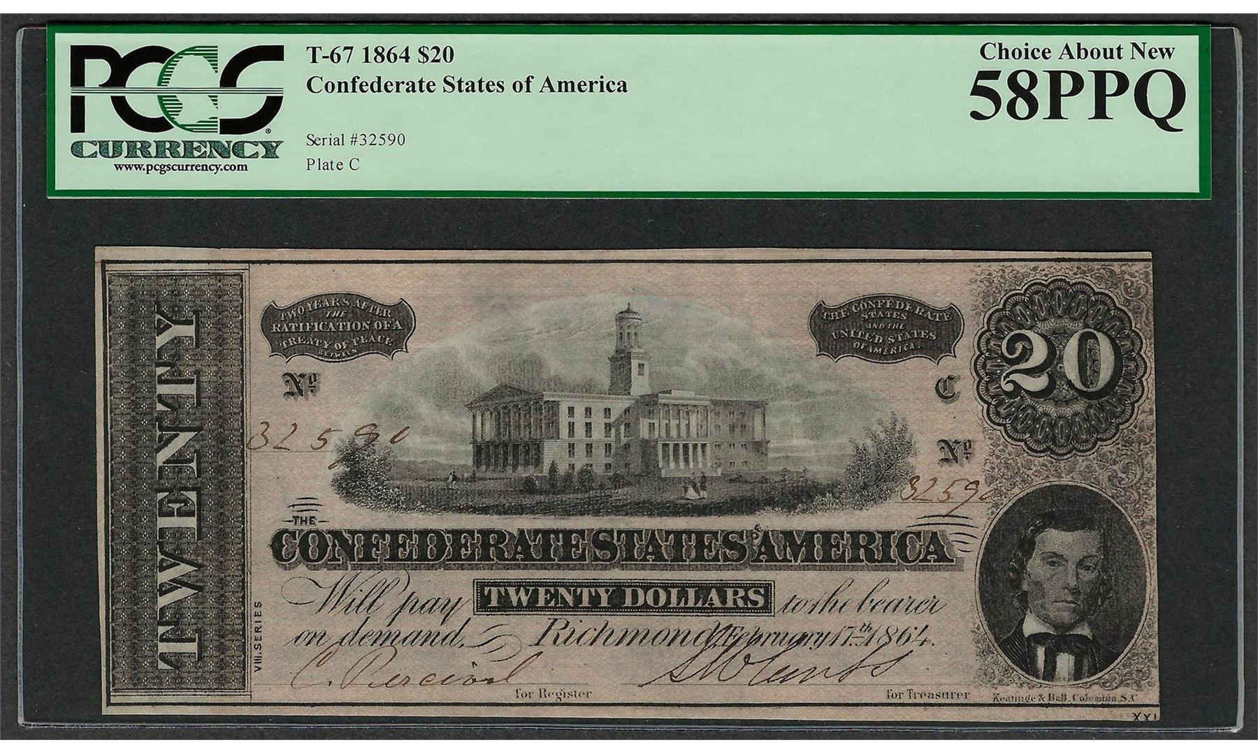 1864 $20 Confederate States of America Note T-67 PCGS Choice About New 58PPQ