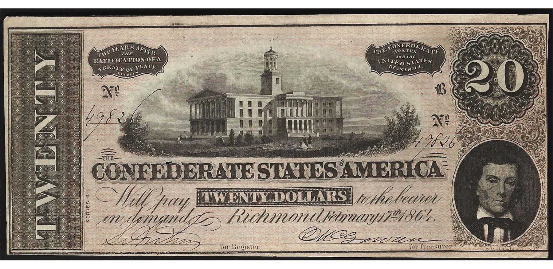 One 1864 $20 Confederate States of America Note.