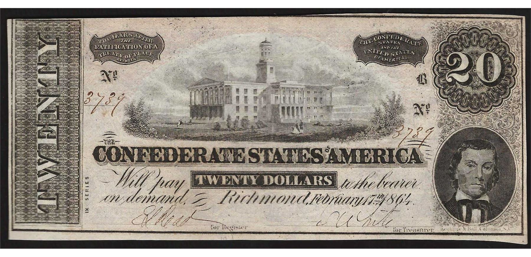 One 1864 $20 Confederate States of America Note.