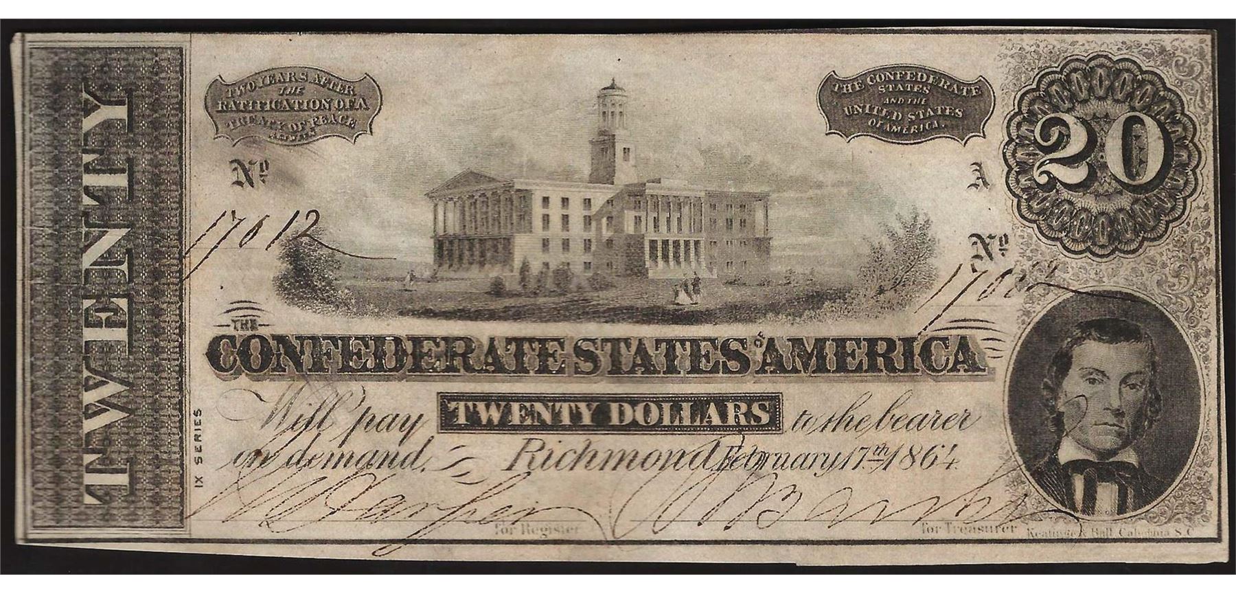 One 1864 $20 Confederate States of America Note.
