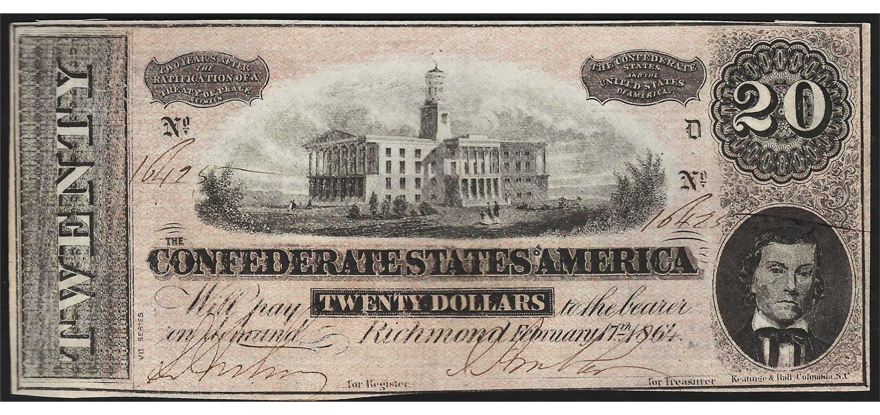 One 1864 $20 Confederate States of America Note.