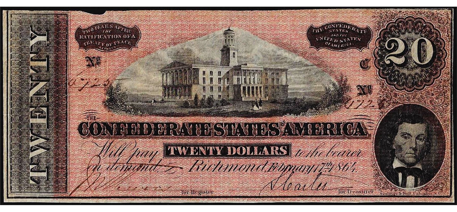 One 1864 $20 Confederate States of America Note.