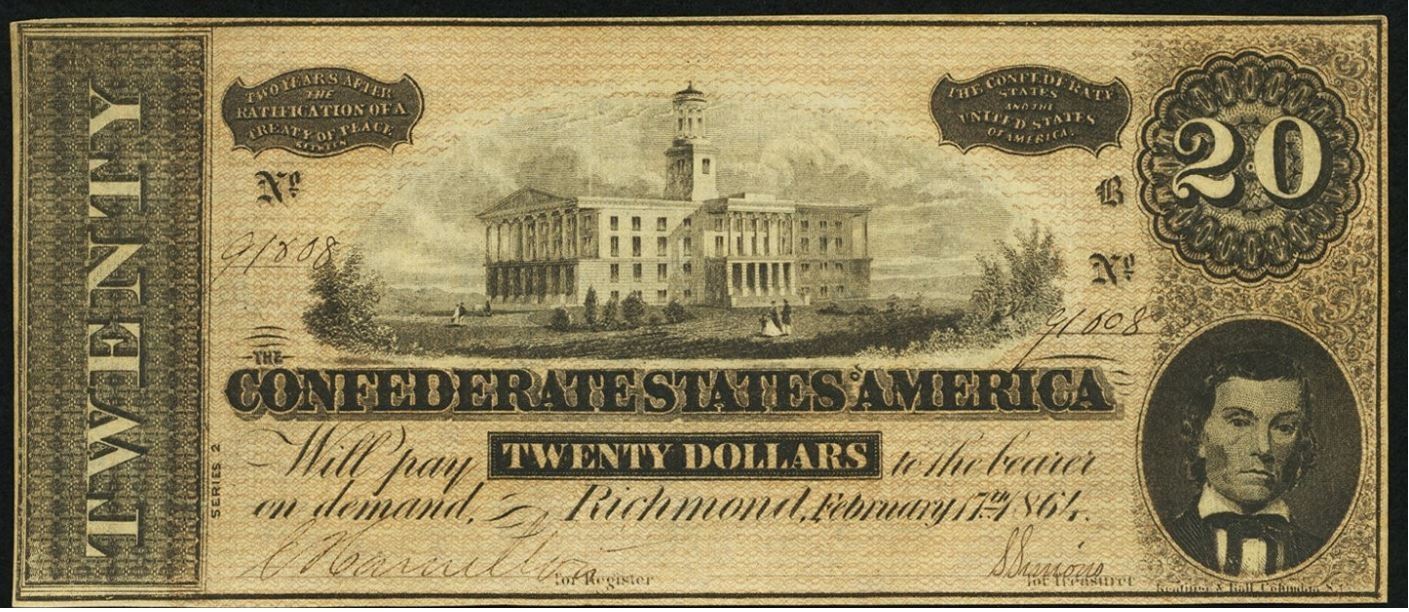 One 1864 $20 Confederate States of America Note.