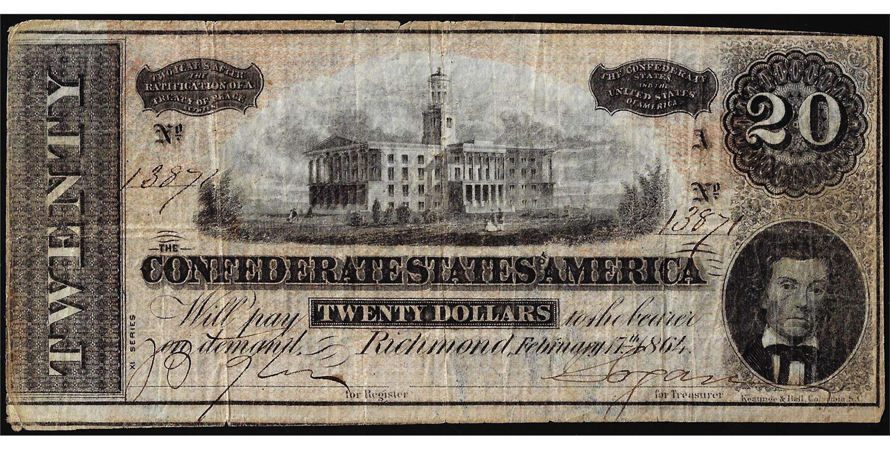 One 1864 $20 Confederate States of America Note.