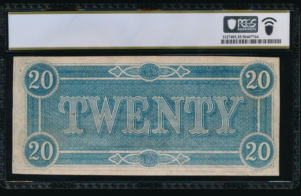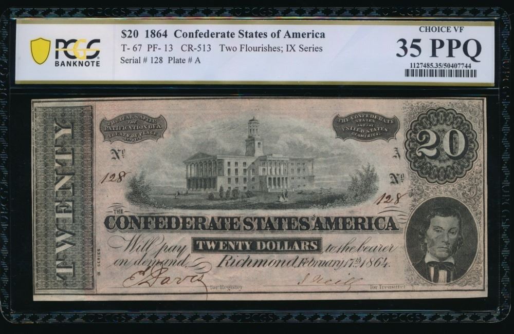 One 1864 $20 T-67 Confederate PCGS 35PPQ.