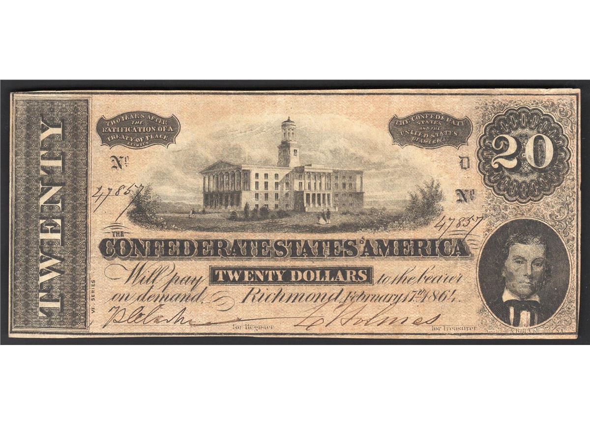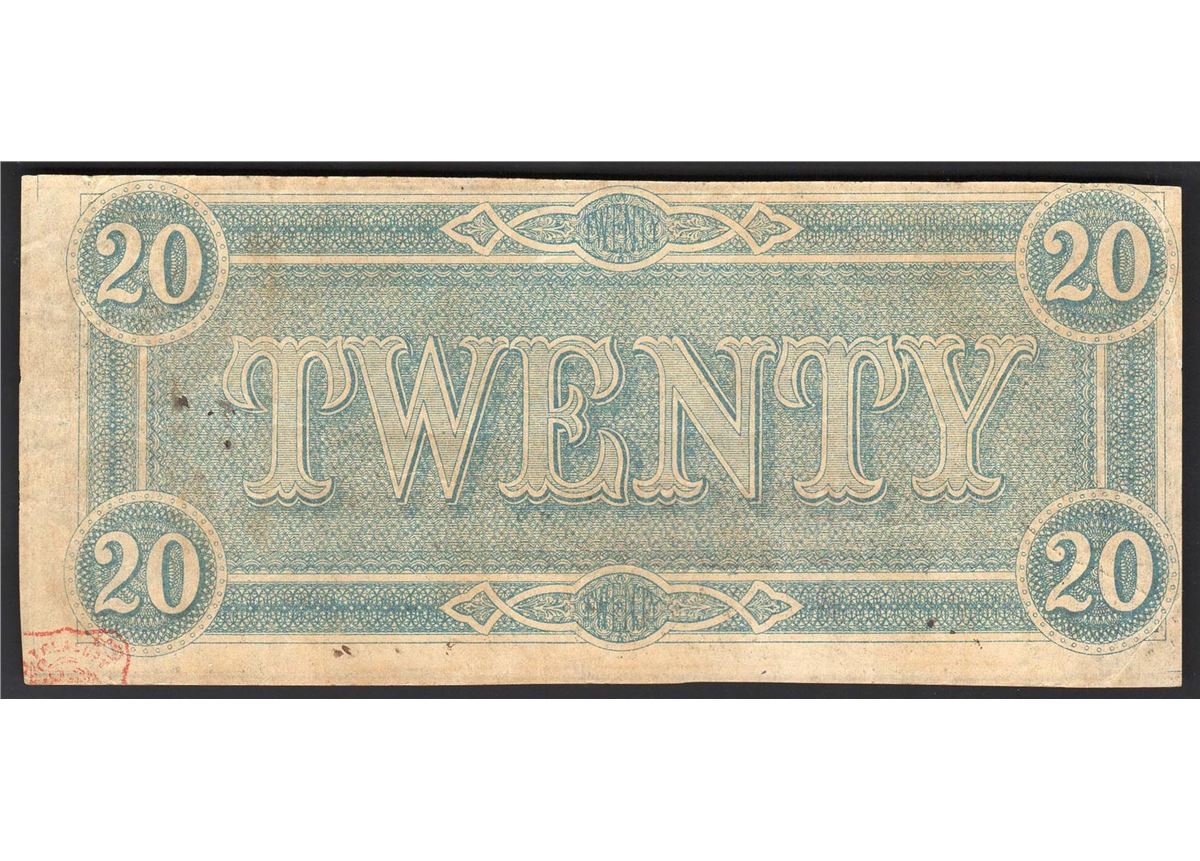 One 1864 $20 The Confederate States of America Note.
