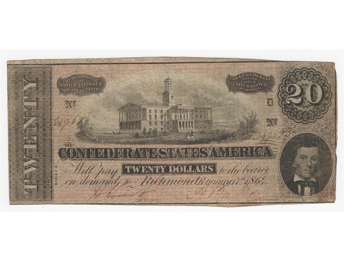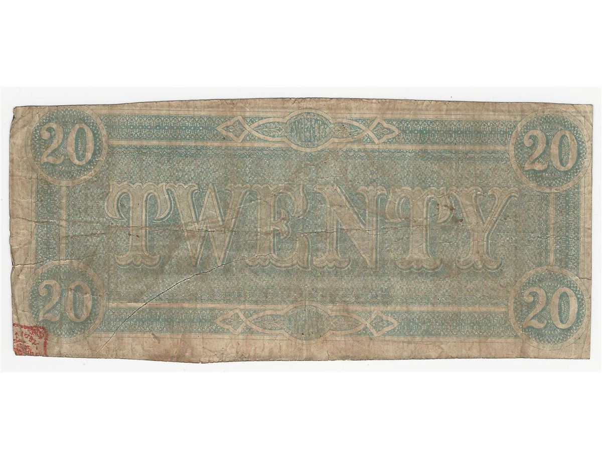 One 1864 $20 The Confederate States of America Note.