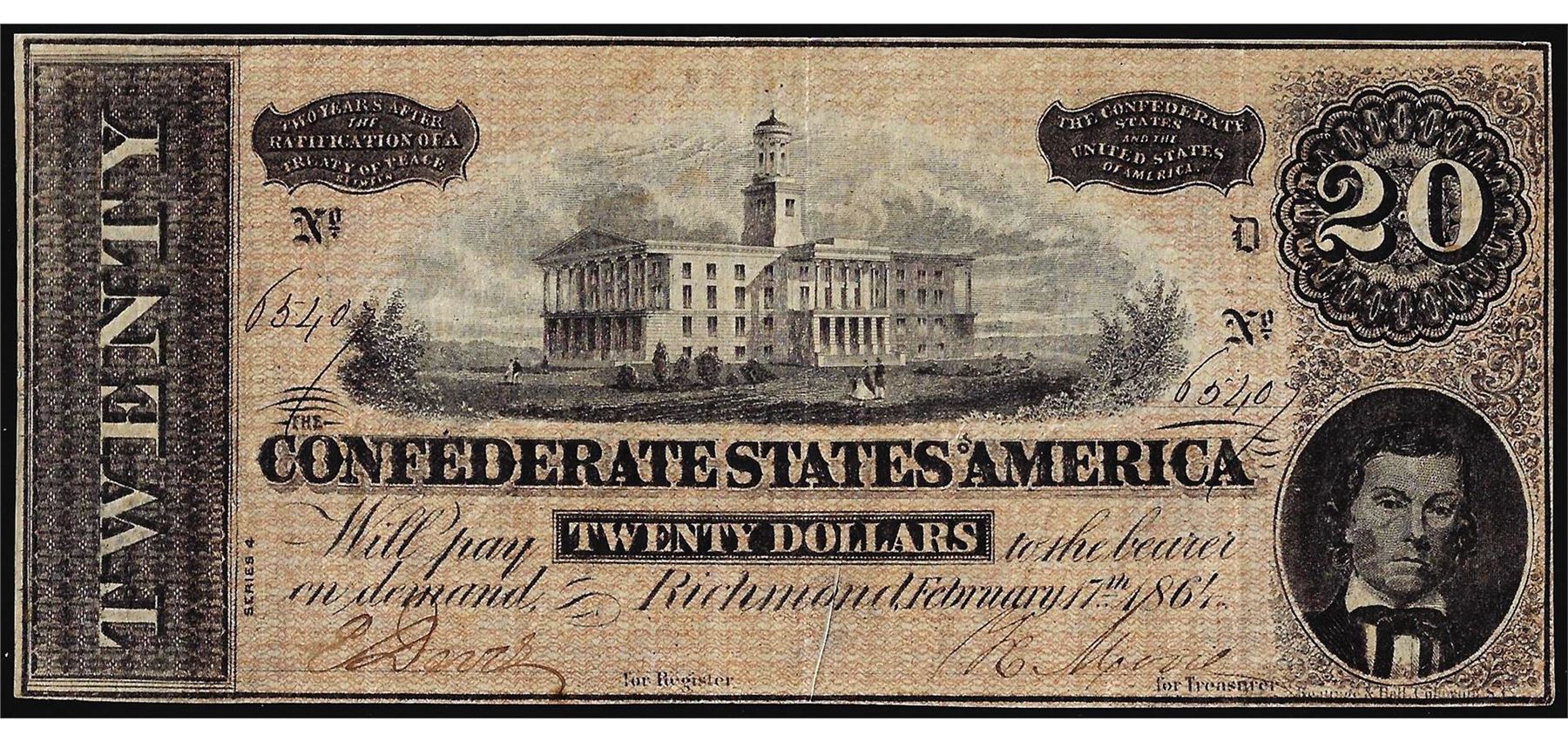 One 1864 $20 The Confederate States of America Note.