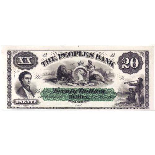 1864 Twenty Dollars The People’s Bank of Halifax Face Proof, CH-10-02FP, PMG Gem Uncirculated 66 Exceptional Paper Quality with matching 1864 Twenty Dollars The People’s Bank of Halifax Back Proof, CH-10-02BP, PMG Choice Uncirculated 64 Exceptional Paper Quality