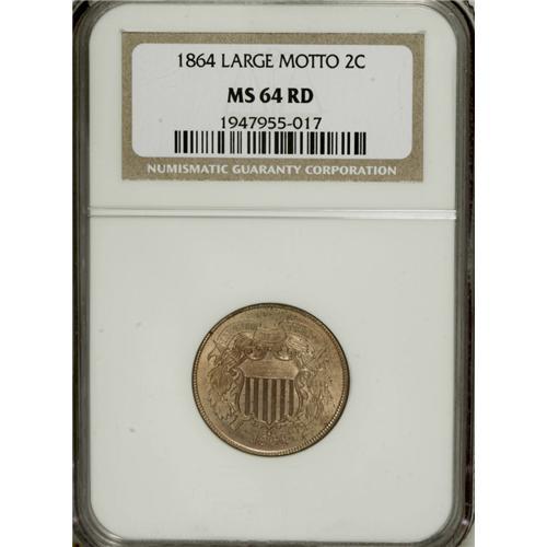 1864 2C Large Motto MS64 Red NGC. This boldly impresse