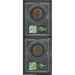 1864 2C Large Motto MS64 Red and Brown PCGS; and an 1867 MS64 Red and Brown PCGS. Both are similar in outward appearance with about a 50-50 mix of medium brown toning and orange-red luster. A well matched lot of near-Gems with no outwardly distracting blemishes.From the Ohio Collection. 2 coins Important notice: We expect to be auctioning lots at the rate of 200-250 per hour. Sometimes eBay Premier live bid software cannot keep up with that pace, so we strongly recommend that you place a realistic proxy bid now as insurance to avoid disappointment. Also please note that all Heritage/CAA lots purchased through eBay Premier carry a 20% Buyer's Premium. Please make sure you read the Terms and Conditions.