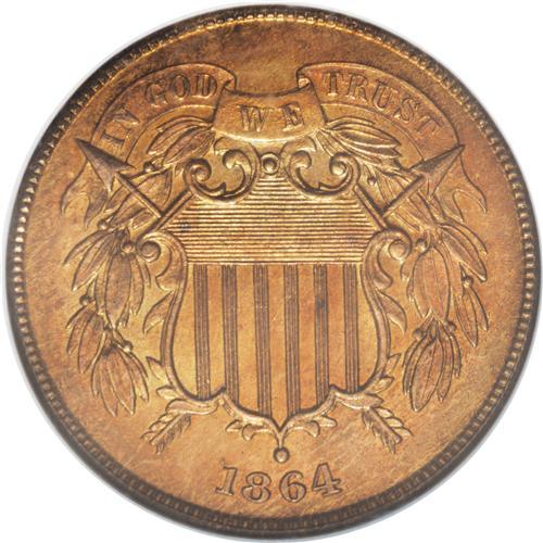 1864 2C Large Motto MS65 Red NGC. This denomination, w