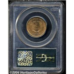 <table><tr><td><table><tr><td>1864 2C Large Motto MS65 Red PCGS. Boldly defined on both obverse and reverse, although a series of die cracks about the reverse lettering forecasts over-stressed dies. The lustrous surfaces exhibit a bright tan color with scattered carbon flecks on the obverse. <BR><BR><B>Important notice:</B> Heritage usually auctions material at the rate of 200-250 lots per hour. On some occasions eBay Live bid software or the Internet may not be able to keep up with the pace of the auction. We recommend placing a realistic absentee bid now as insurance to avoid disappointment. Occasionally the auctioneer may eliminate or reject an eBay Live bid, and the auctioneer may also reopen a lot after the close of the eBay live bidding (usually because we missed an audience bid), and may reject your bid even if it shows you as the winning bidder. By bidding via eBay Live, you agree that Heritage may award the lot to another bidder at its sole discretion under the circumstances described above or any other reasonable circumstances. Since eBay bids are not shown to us until we open the lot on the floor, we treat those bids just like floor bids. In most cases the floor responds before the eBay bid is presented to us, due to Internet lag time, so for consistency we have made it a policy that floor bids are always considered first over tie eBay live bids. Also please note that all Heritage lots purchased through eBay Live carry a 20% Buyer's Premium. Please make sure you read the Terms and Conditions before you bid. <BR><BR><B>IMPORTANT ANNOUNCEMENT ABOUT RESERVES:</B> Heritage now divulges all reserves on its web site 7 days before every auction. If you want to know whether the reserve on this lot has been met, and if not, what the reserve amount is, please visit this lot page on the HeritageCoin.com web site, or email: bid@HeritageGalleries.com </span></font></td></tr></table></td></tr></table>