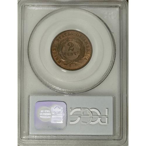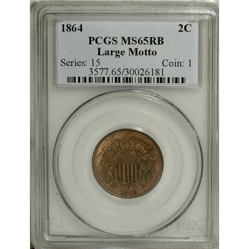 1864 2C Large Motto MS65 Red and Brown PCGS. Satin lus