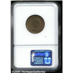 <B>1864<2C> Large Motto MS66 Red and Brown NGC.</B></I> Mellowed color, still retaining about 50% of the original reddish-golden luster. Sharply struck, with no significant abrasions or carbon spots. Population: 85 in 66, 2 finer (7/04). <BR><BR><B>Important notice:</B> Heritage usually auctions material at the rate of 200-250 lots per hour. On some occasions eBay Live bid software or the Internet may not be able to keep up with the pace of the auction. We recommend placing a realistic absentee bid now as insurance to avoid disappointment. Occasionally the auctioneer may eliminate or reject an eBay Live bid, and the auctioneer may also reopen a lot after the close of the eBay live bidding (usually because we missed an audience bid), and may reject your bid even if it shows you as the winning bidder. By bidding via eBay Live, you agree that Heritage may award the lot to another bidder at its sole discretion under the circumstances described above or any other reasonable circumstances. Since eBay bids are not shown to us until we open the lot on the floor, we treat those bids just like floor bids. In most cases the floor responds before the eBay bid is presented to us, due to Internet lag time, so for consistency we have made it a policy that floor bids are always considered first over tie eBay live bids. Also please note that all Heritage lots purchased through eBay Live carry a 20% Buyer's Premium. Please make sure you read the Terms and Conditions before you bid. </span></font></tr></table></td></tr></table>