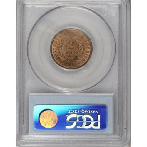 1864 2C Large Motto Red and Brown MS64 PCGS