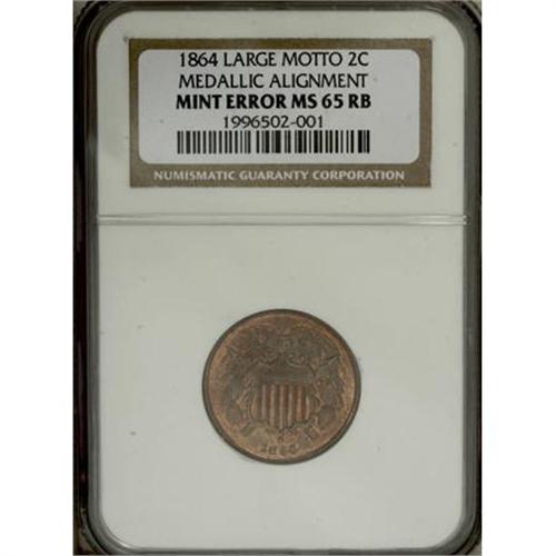 <B>1864 2C Two Cent--Medallic Alignment--Large Motto MS65 Red and Brown NGC.</B></I><BR><BR><B>Coin Engraver:</B> James B. Longacre<BR><BR><b>Shipping:</b> Coins & Currency (<a target="_blank" href="http://www.heritageauctions.com/common/shipping.php">view shipping information</a>)