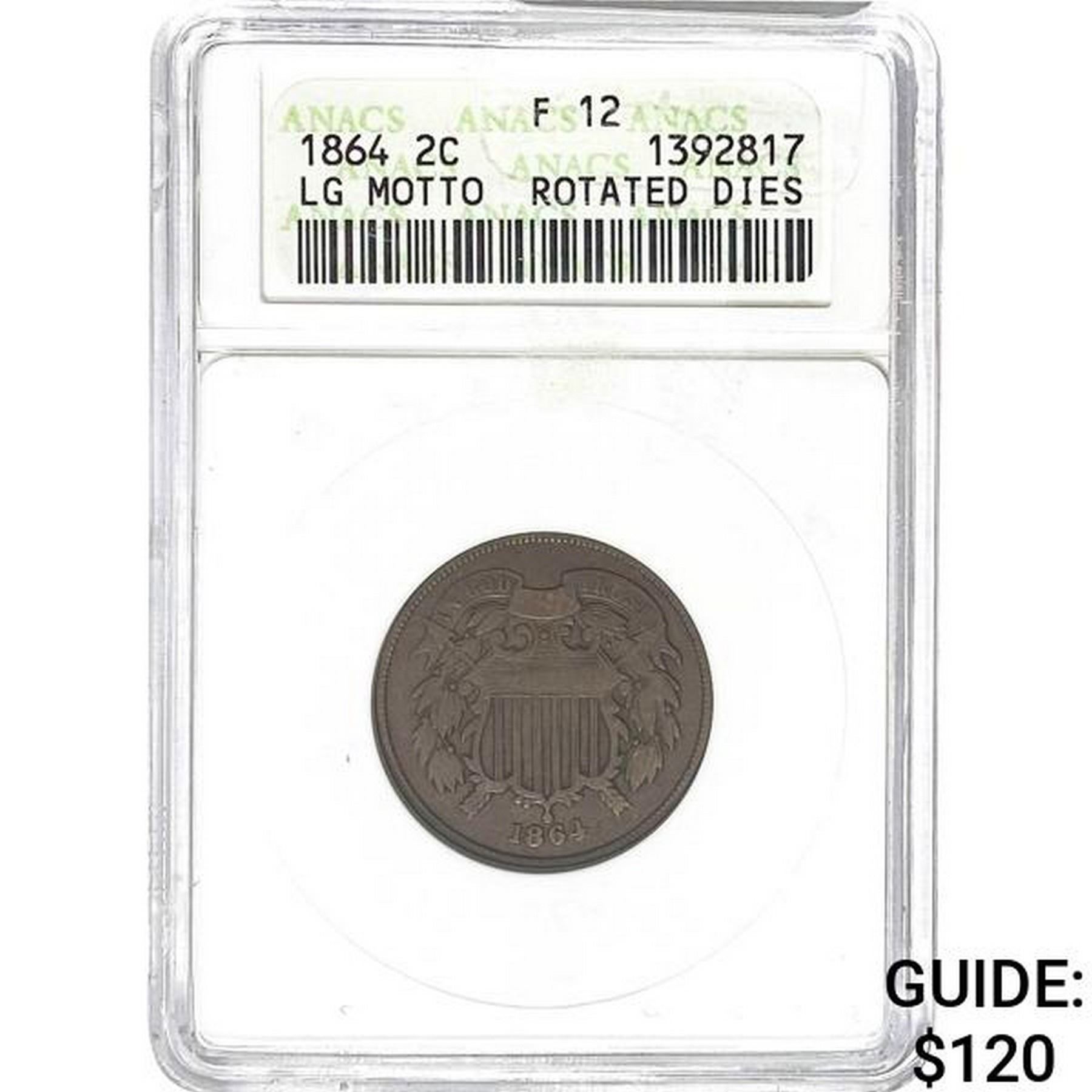 1864 2C Large Motto Rotated Dies ANACS F