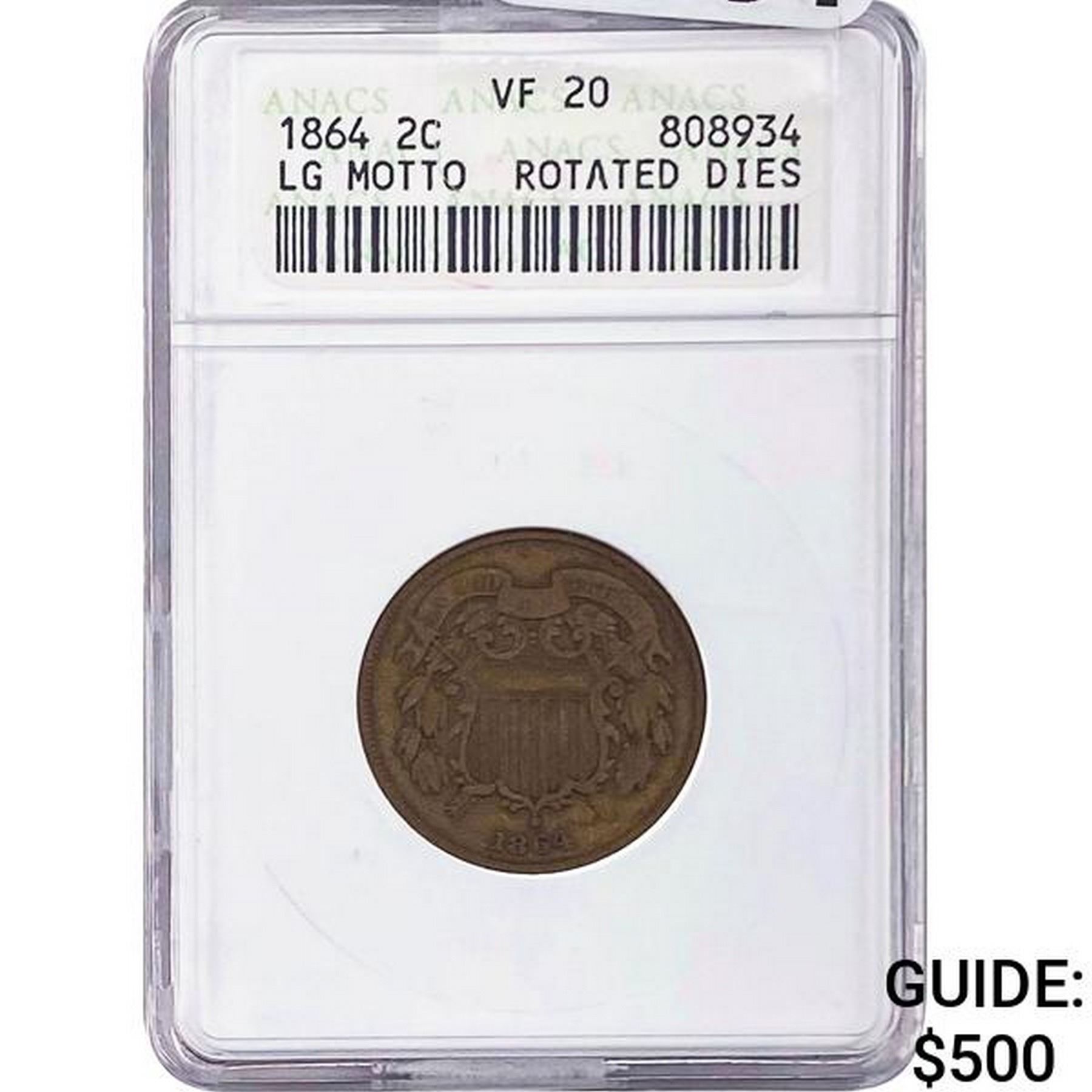 1864 2C Large Motto Rotated Dies ANACS VF20