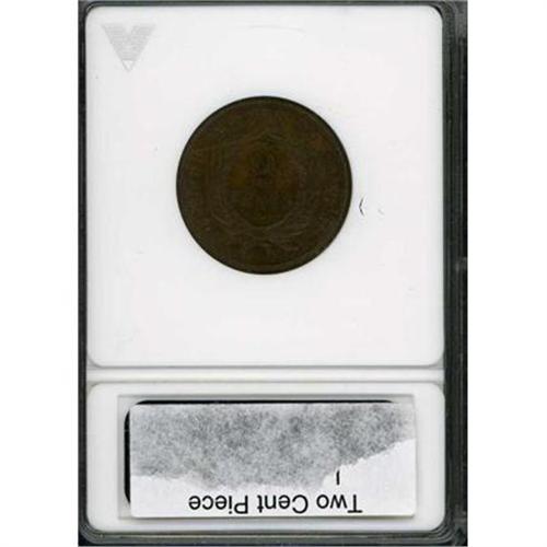 <b>1864 Two Cents. Large motto. ANACS graded MS63 RB Repunched date.</b> The small motto represents the first emission of two cent coinage and has letter punches on IN GOD WE TRUST close in size to the Patterns that preceded regular issue. Later, the Mint decided to use a punch set with larger letters for better readability, leaving this orphan variety for collectors to admire. Smooth glossy brown with original red color present on both sides. Well struck on the main devices with no problems <b>(PCGS # 3577)</b>