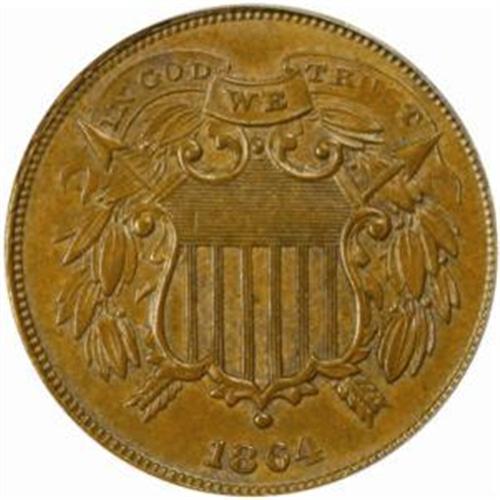 <style type="text/css"> body, td, th { font-family: Arial, Helvetica, sans-serif; font-size: 12px; color: #482424; margin: 0px; padding: 0px; } #header { background-image: url(http://www.bowersandmerena.com/ebay/images/template_v3_01.gif); clear: both; background-color: #590303; border-top-width: 2px; border-top-style: solid; border-top-color: #B38C4F;}#header #header_wrapper { height: 75px; clear: both; width: 800px; margin-right: auto; margin-left: auto; background-image: url(http://www.bowersandmerena.com/ebay/images/template_v3_03.gif); background-repeat: no-repeat; background-position: right; color: #F3EDCC;}#header #header_wrapper #header_logo { float: left; height: 75px; width: 444px; background-image: url(http://www.bowersandmerena.com/ebay/images/template_v3_02.gif); background-repeat: no-repeat; font-size: 10px; text-transform: capitalize; color: #B38C4F;}#header #header_wrapper #header_right { float: left; height: 75px; width: 356px; text-align: right;}#header #header_wrapper #header_right #headerLoginBtn { margin-bottom: 30px;}#header #header_wrapper #header_right input#txtSearch { color: #B49056; border: 1px solid #B49056; width: 175px; padding-top: 3px; padding-right: 3px; padding-bottom: 4px; padding-left: 3px;}#nav { height: 37px; background-image: url(http://www.bowersandmerena.com/ebay/images/template_v3_05.gif); clear: both;}#nav #nav_wrapper { height: 35px; width: 800px; margin-right: auto; margin-left: auto; border-left-width: 1px; border-left-style: solid; border-left-color: #B38C4F;}#nav #nav_wrapper a { padding-right: 15px; padding-left: 15px; border-right-width: 1px; border-right-style: solid; border-right-color: #B38C4F; height: 25px; padding-top: 10px; display: block; float: left; text-decoration: none; font-weight: bold; color: #5D0303;}#nav #nav_wrapper a:hover { color: #B38C4F;}#nav #nav_wrapper #search { float: right; padding-top: 7px;}#nav #nav_wrapper #search #txtSearch { font-family: Arial, Helvetica, sans-serif; font-size: 10px; text-transform: uppercase; color: #D2AE75; border: 1px solid #B38C4F; padding: 3px;}#content_bgd { background-image: url(http://www.bowersandmerena.com/ebay/images/template_v3_09.gif); background-repeat: repeat-y; background-position: center; padding-top: 15px; padding-bottom: 15px; background-color: #FBFBDB;}#content_wrapper { clear: both; height: auto; width: 800px; margin-right: auto; margin-left: auto;}.LotDetailWhite{ line-height:normal; font-size:13px; font-family: arial,helvetica,sans-serif; color: White; font-weight: bold;}.LotDetailInformation{ line-height:normal; font-size: 13px; font-family: arial,helvetica,sans-serif;}.LotDetailMessage{ line-height:normal; font-size: 13px; font-family: arial,helvetica,sans-serif; color: red;}}tr.HeaderAuctionTitle td { color: #000000; font-weight: bold; padding: 2px; background-image: url(http://www.bowersandmerena.com/ebay/images/template_v3_05.gif); background-repeat: repeat-x; border-bottom-width: 1px; border-bottom-style: solid; border-bottom-color: #B38C4F;}table.AuctionSummary a, table.AuctionSummary a:link, table.AuctionSummary a:visited { color: #0000FF; text-decoration: none;}}td.tableHeaderLeft { border-left-width: 1px; border-left-style: solid; border-left-color: #B38C4F;}td.tableHeaderRight { border-right-width: 1px; border-right-style: solid; border-right-color: #B38C4F;}td.tableCellMiddle { border-left-width: 1px; border-left-style: solid; border-left-color: #B38C4F; border-right-width: 1px; border-right-style: solid; border-right-color: #B38C4F; padding: 5px;}tr.footer td { border-top-width: 1px; border-top-style: solid; border-top-color: #B38C4F;}</style></head><body><div id="header"> <div id="header_wrapper"> <div id="header_logo"> </div> <div id="header_right"> </div> </div></div><div id="nav"> <div id="nav_wrapper"> <a href="http://www.bowersandmerena.com">Our eBayLive Auctions</a> <a href="#PaymentInfo">Payment Information</a> <a href="#ShippingInfo">Shipping Information</a> <a href="#About">About Bowers and Merena</a> </div></div><div id="content_bgd"> <div id="content_wrapper"> <table width="100%" border="0" cellpadding="5" cellspacing="0" class="AuctionSummary"> <tbody> <tr class="HeaderAuctionTitle" style="height: 25px;"> <td align="left" class="tableHeaderLeft" > </td> <td align="center" class="tableHeaderRight"> <span style="font-size: large;">Lot #328. 1864 Two-Cent Piece. FS-000.5. Small Motto. MS-64 BN (PCGS).</span> </td> </tr> <tr> <td colspan="3" class="tableCellMiddle"> This is an uncommonly attractive coin even for the near-Gem grade level. The surfaces exhibit rich, even, chocolate-brown patina that provides a lovely glossy texture to both sides. Sharply struck and smooth, this piece is knocking on the door of an even higher Mint State grade.