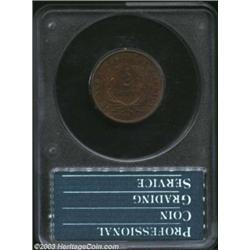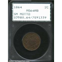 1864 2C Small Motto MS64 Red and Brown PCGS. The tan and lilac color is even on the obverse, with a.