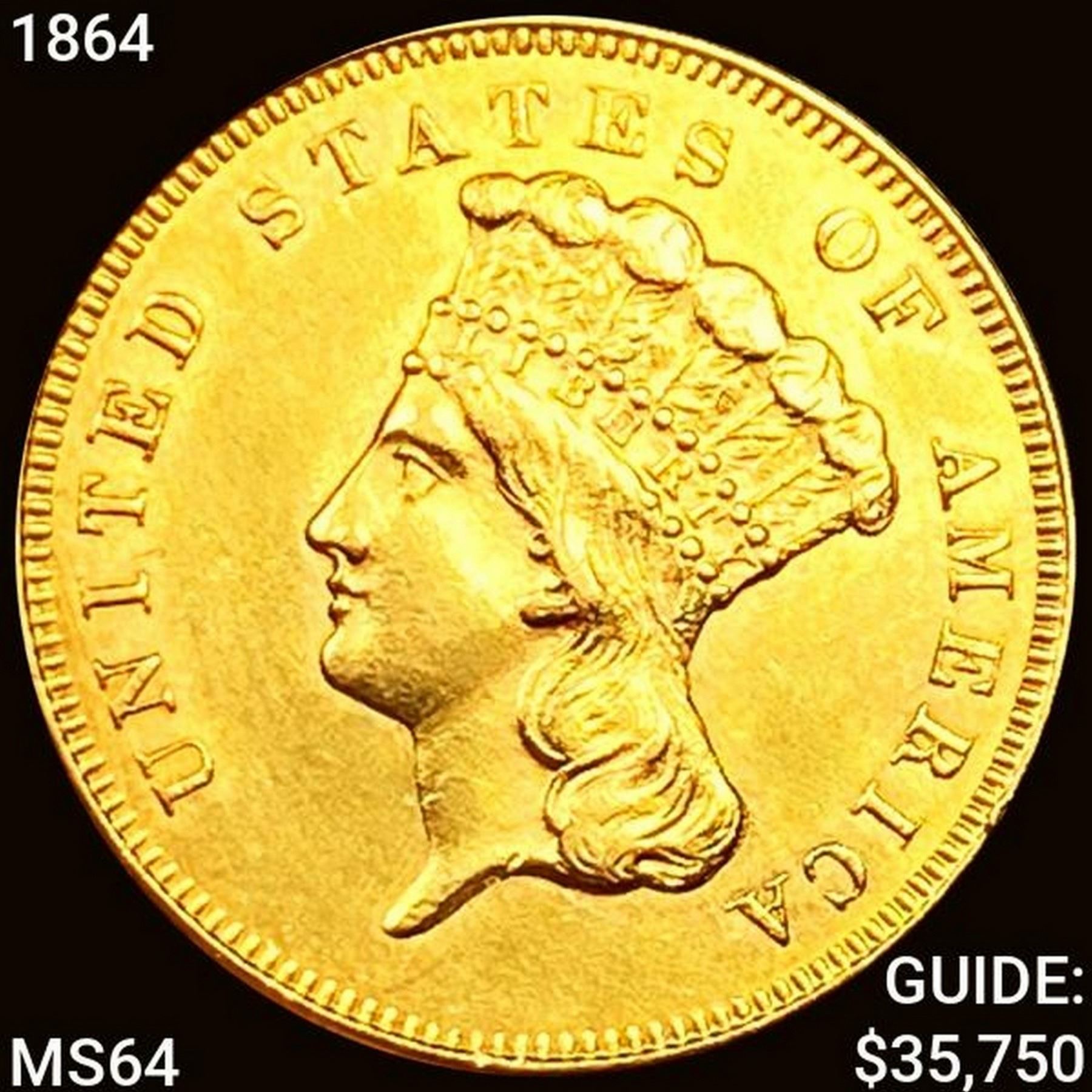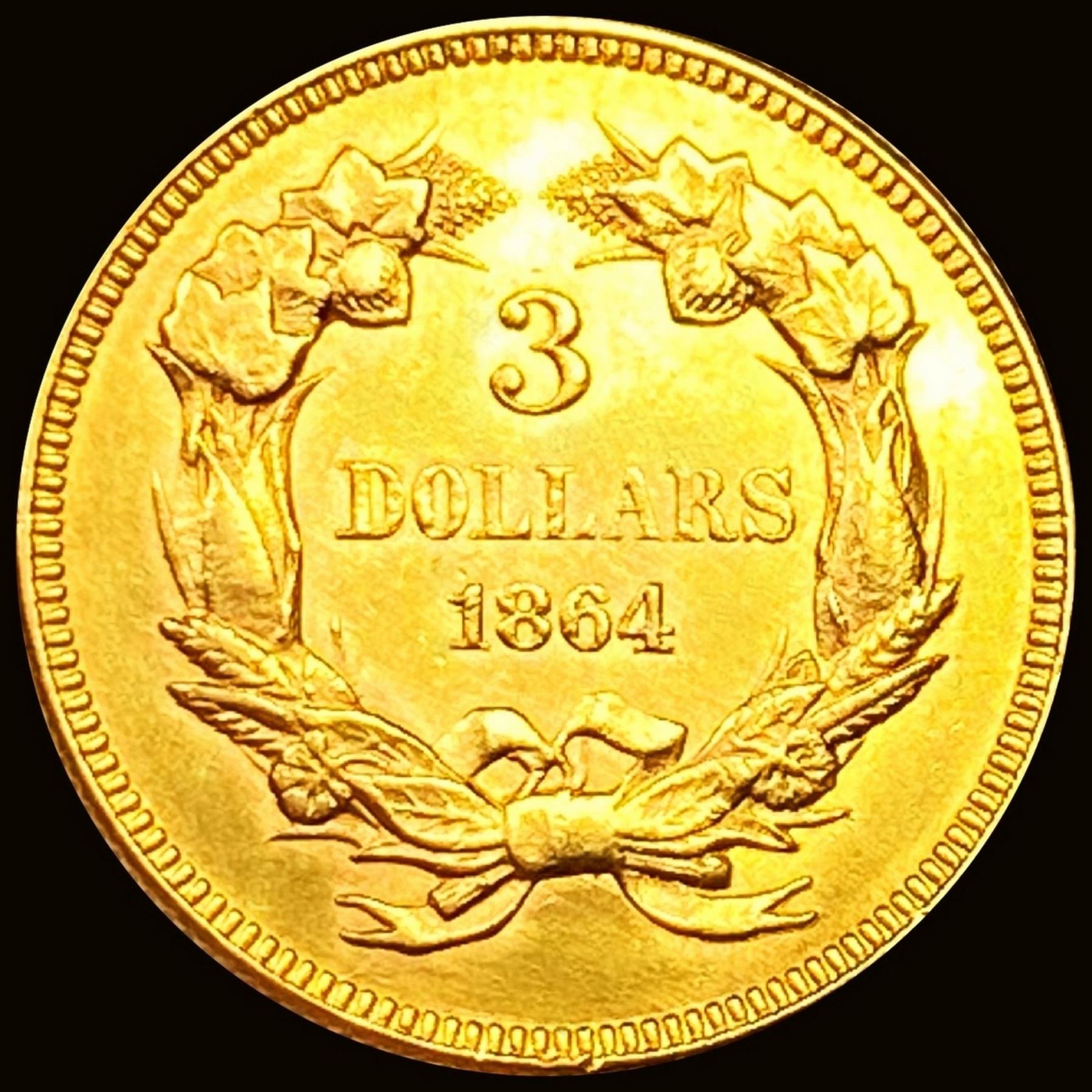 1864 $3 Gold Piece CHOICE BU