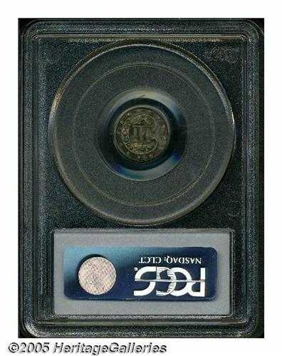 <B>1864<3CS> MS65 PCGS.</B></I> Only 12,000 pieces were struck of this date, representing only a token mintage as most silver coins were melted or exported during the Civil War. This is a remarkably well preserved coin that has thick underlying mint luster that is overlaid with layer upon layer of deep iridescent cobalt-blue, golden-brown, and lilac toning. The obverse fields show heavy die clashing. An unusual issue to locate as a high grade business strike. Population: 10 in 65, 27 finer (4/05).