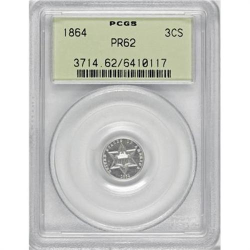<B>1864 3CS PR62 PCGS.</B></I> PCGS Population (17/136). NGC Census: (1/124). Mintage: 470. Numismedia Wsl. Price for NGC/PCGS coin in PR62: $392. (#3714)<BR><BR><B>Coin Engraver:</B> James B. Longacre<BR><BR><b>Shipping:</b> Coins & Currency (<a target="_blank" href="http://www.heritageauctions.com/common/shipping.php">view shipping information</a>)