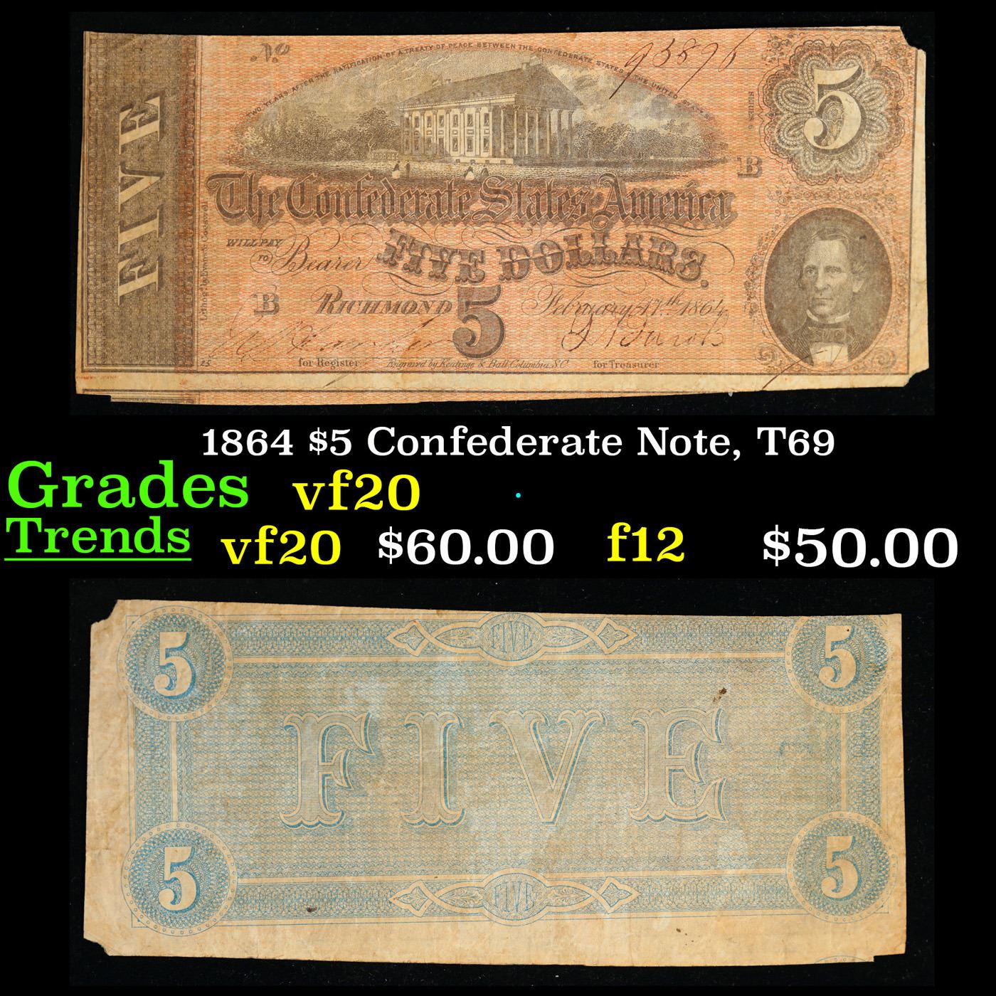 1864 $5 Confederate Note, T69 Grades vf, very fine