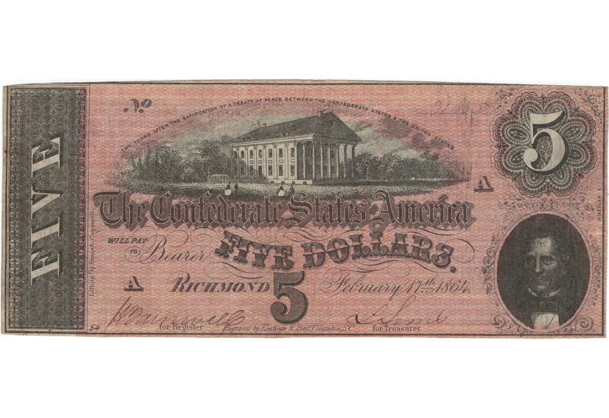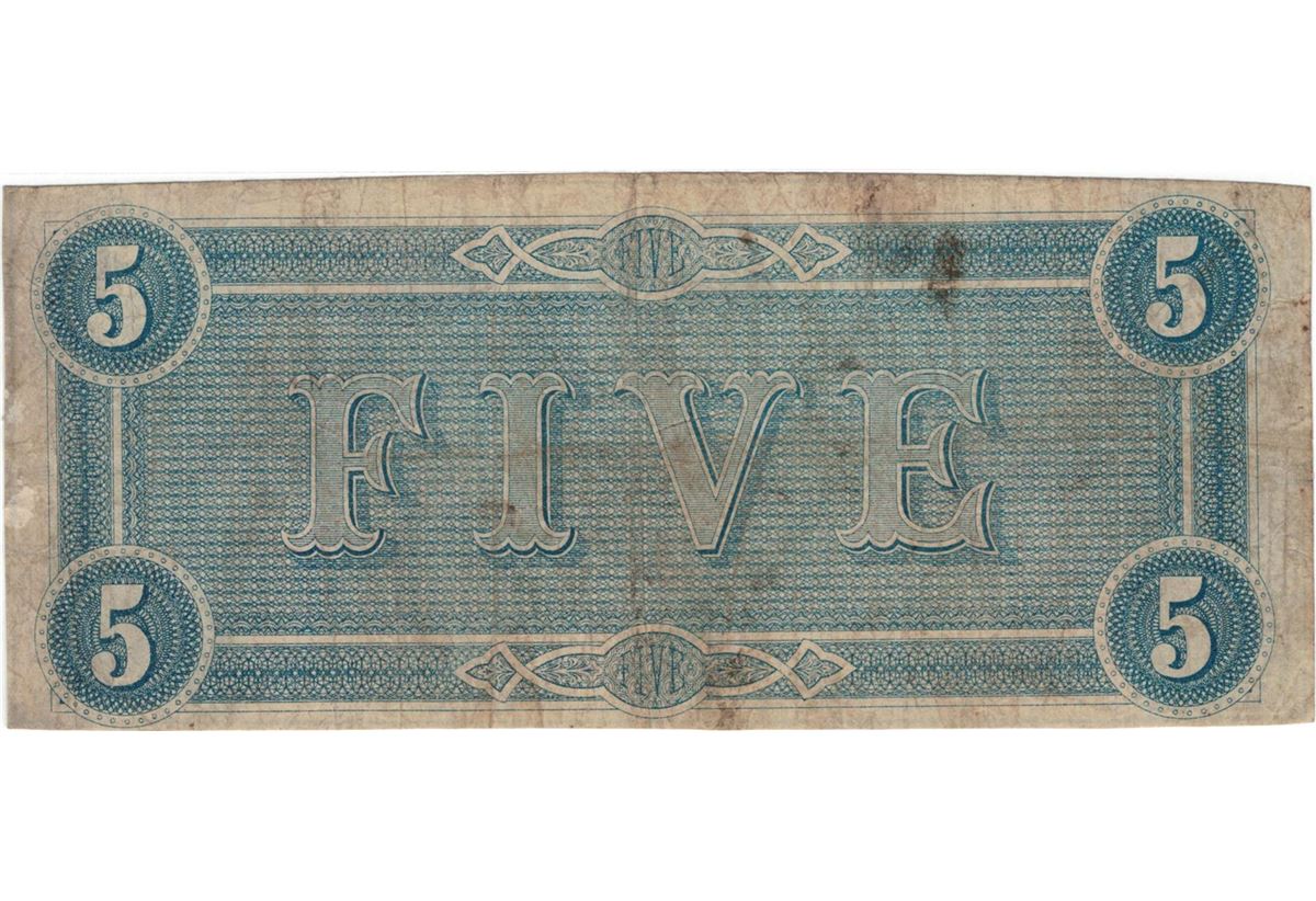 1864 $5 Confederate States of America Bank Note.