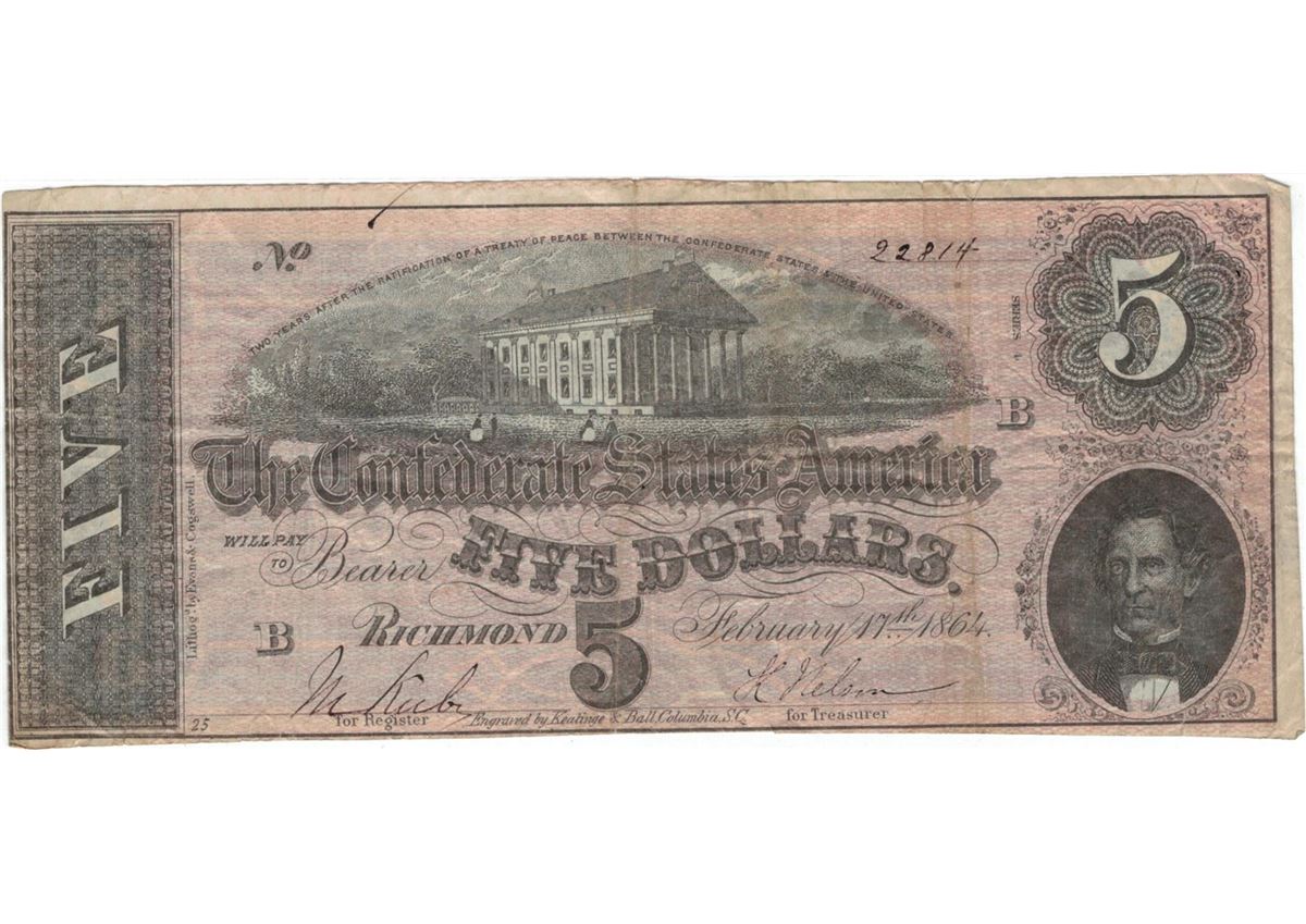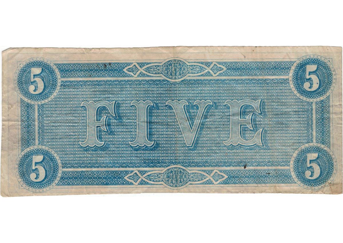1864 $5 Confederate States of America Bank Note.